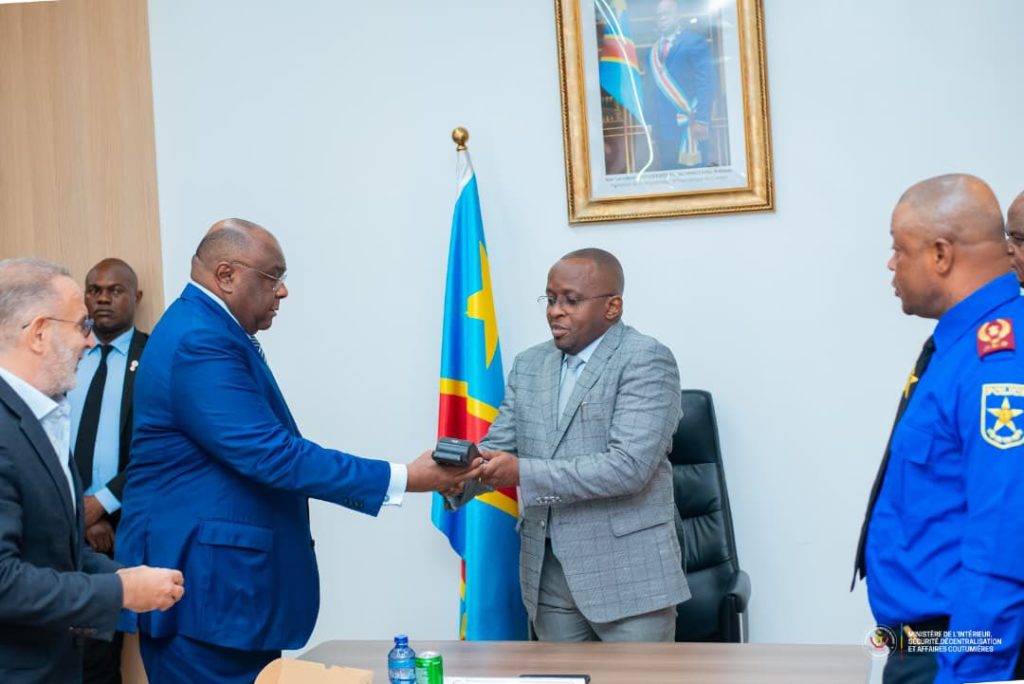 Kinshasa, 04 septembre 2025 – La Police nationale congolaise (PNC) franchit une nouvelle étape dans la modernisation de ses outils de contrôle. Une cérémonie solennelle de remise du matériel de vérification du nouveau permis de conduire biométrique a eu lieu ce jeudi à Kinshasa, sous la présidence du Vice-Premier ministre, ministre de l’Intérieur, Sécurité, Décentralisation et Affaires coutumières, Jacquemain Shabani. L’événement s’est déroulé en présence de son collègue des Transports, Voies de communication et Désenclavement, Jean-Pierre Bemba.