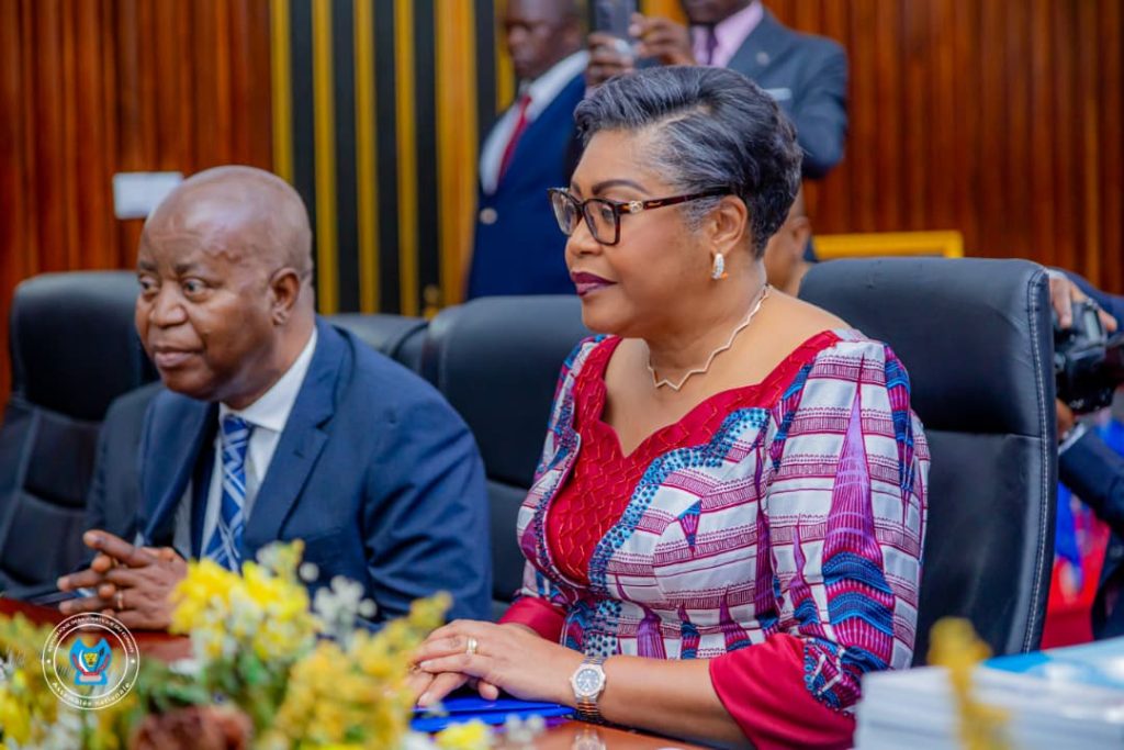 « Nous avons accompli notre devoir constitutionnel », a-t-elle déclaré, entourée notamment du Vice-Premier ministre en charge du Budget, Adolphe Muzito, du Ministre des Finances, Doudou Fwamba, du Ministre d’État chargé des Relations avec le Parlement, Guy Loando, du Ministre de la Communication et Médias, Patrick Muyaya, ainsi que du Vice-ministre du Budget, Elysé Bokumwana.